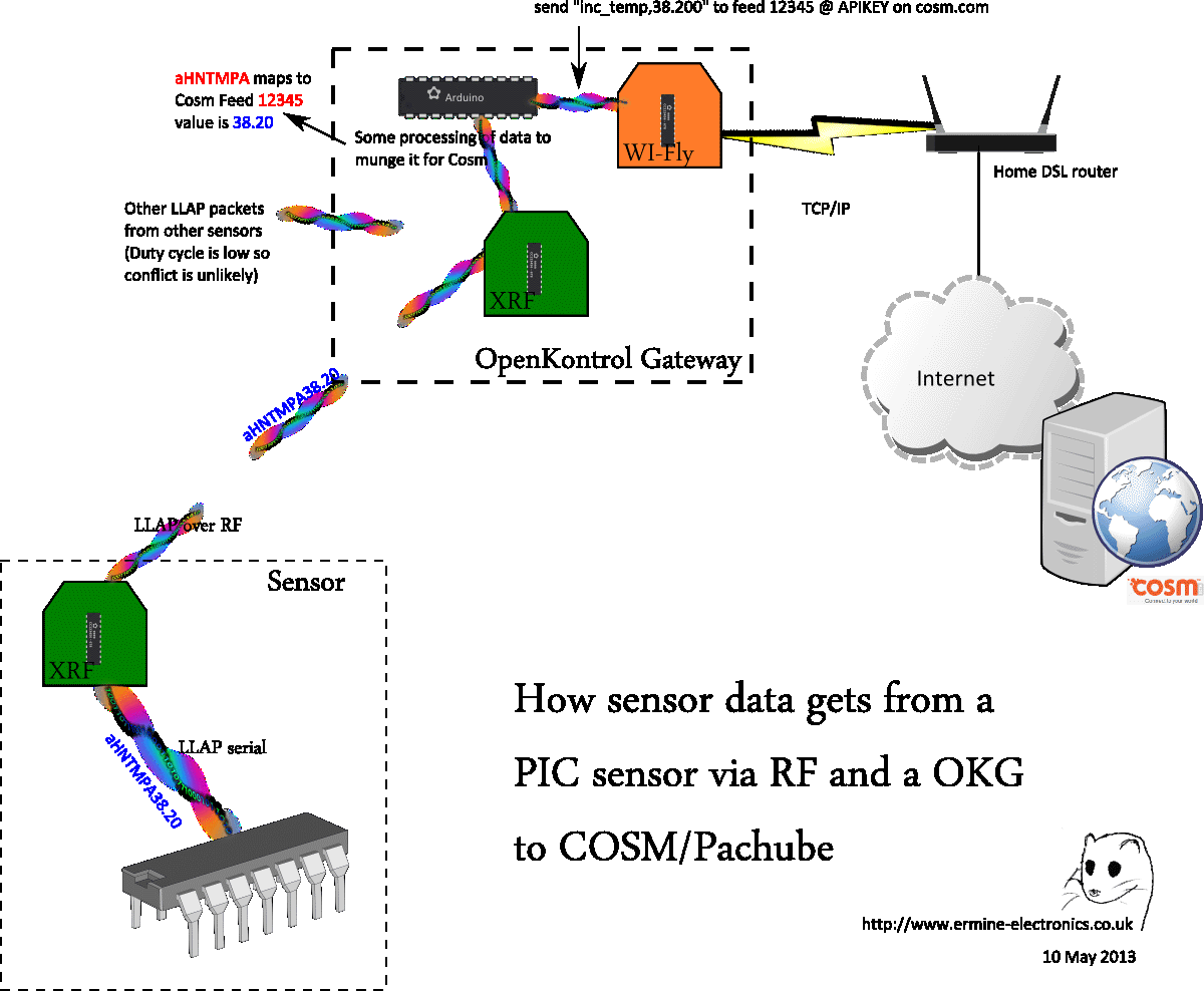 Previous image Next image How sensor data gets to COSM How sensor data gets to from a low-powered serial LLAP device to COSM